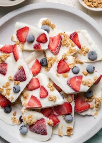 Simple and quick to make, this healthy frozen yogurt bark recipe is the perfect summer treat. Topped with fresh berries and crunchy granola. Cool down this summer with this healthy frozen yogurt bark. Topped with blueberries, strawberries and granola, it’s perfect for snacks, dessert or even breakfast. With its red, white and blue colors, it’s […]