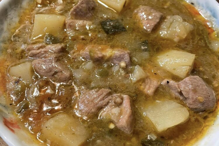 Fry the washed and cubed potatoes in ¼ cup of preheated oil at medium heat for 10 minutes or until golden on most sides. Season lightly with salt and pepper. Fold the potatoes and reserved poblano into the pork during the last 15 minutes of cooking time. Serve chile verde with rice, beans, and warm tortillas.
