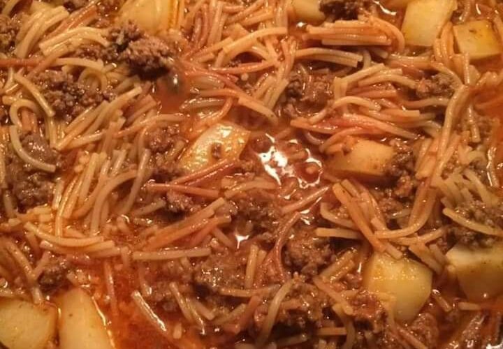 Fideo with potatoes and ground beef