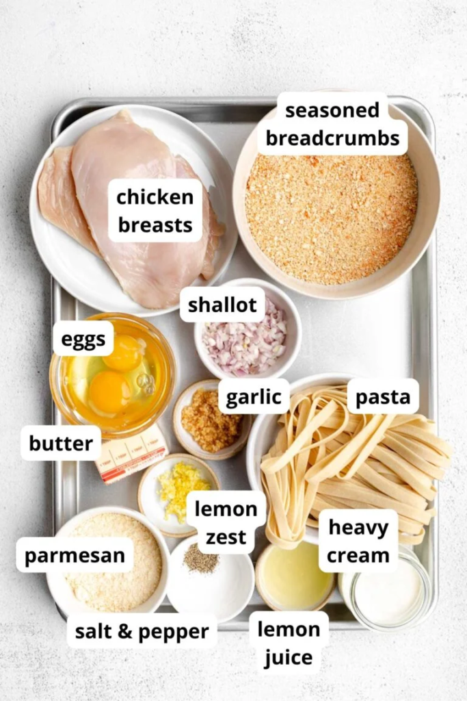 Crispy Chicken Cutlets with Lemon Parmesan Pasta