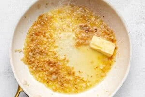 - Saute the shallot for 2-3 minutes, then add in the garlic and saute 1-2 more minutes. Add in the rest of the butter and melt.1 shallot,1 tablespoon minced garlic,1/4 cup unsalted butter