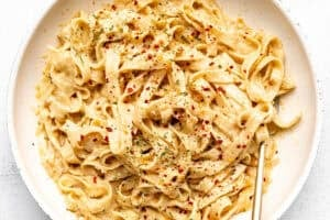 Or, if you’re looking to keep this low carb and keto friendly, you can try zucchini noodles in place of regular pasta. Generally speaking, I opt for brown rice pasta like in my broccoli cheddar pasta! For this recipe, I used a fresh gluten free fettuccine from the brand Taste Republic which I found at Whole Foods.