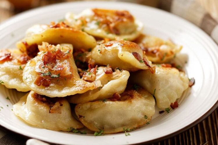 • Wet the edges of the dough before closing your perogies, and be sure to form your pinky fingers along the filling, pushing out any air that might be trapped. This will prevent the perogies from floating and breaking open when you cook them.