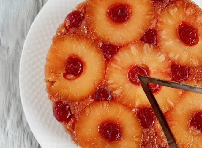 This classic gluten-free pineapple upside down cake features a moist, tender buttery cake topped with caramelized pineapple rings and vibrant maraschino cherries. Baked to golden perfection, it flips into a beautiful, retro-inspired dessert with a sweet, tropical flavor in every bite. The recipe can be made gluten-free, dairy-free, vegan, or regular.